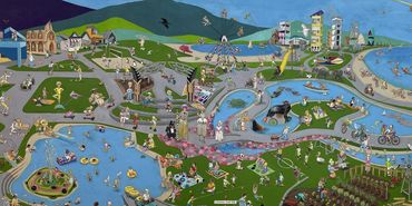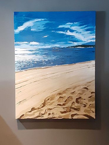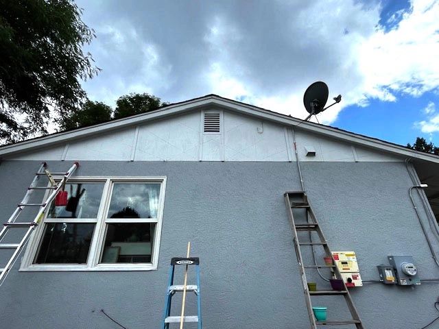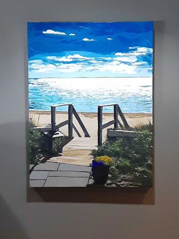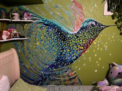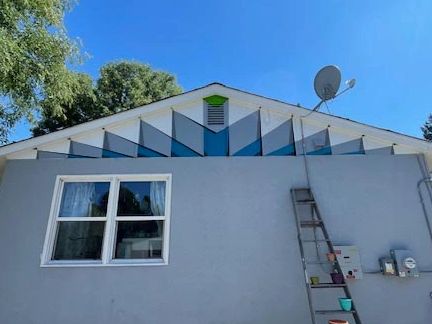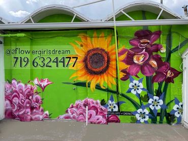 Whether it's for a house or business, I can put paint on any wall even if it's textured. Painting on a wall is very satisfying and challenging. It is fun for me to put everything i know into the design and installation of these large pieces. Safety first up high. It's ok when my tool belt is constantly being modified to accommodate
